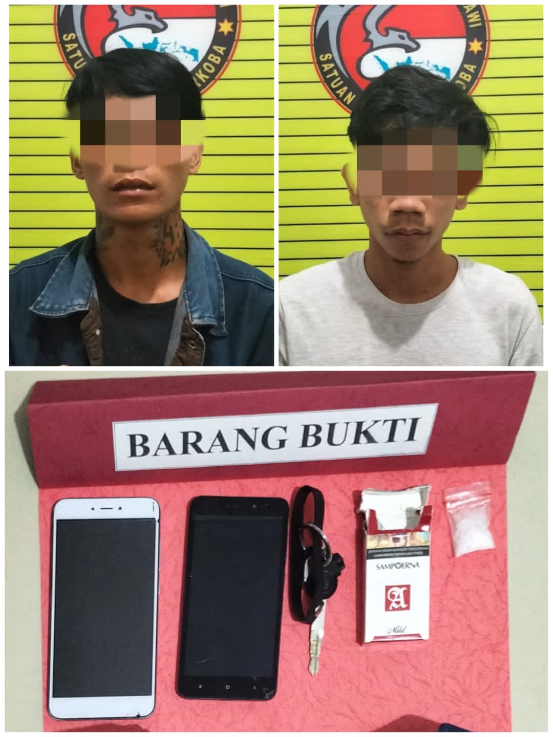 “Terhadap kedua tersangka tersebut kami kenai pasal yaitu penyalahgunaan Narkotika pasal 114 ayat (1) jo pasal 132 (1) atau pasal 112 ayat (1) jo pasal 132 (1), undang-undang Republik Indonesia Nomor 35 Tahun 2009 tentang Narkotika. Kedua tersangka ini disangka sebagai pengedar karena hasil tes urine terhadap kedua tersangka ini hasilnya negatif dan akan mendapatkan hukuman yang berat,” tegasnya.