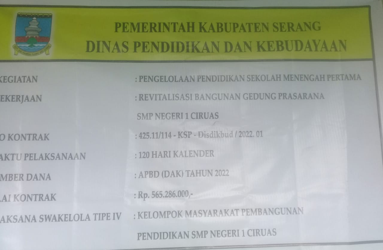 Kab, Serang, Dengan beredarnya pengunduran diri Pokmas pembangunan SMP Negeri 1 Ciruas penuh tanda tanya publik. Dan ada apa dengan dasar pengunduran diri tersebut Dan Sekertaris pun akan mengundurkan diri juga dari keanggotaan pokmas pembangunan SMP Negeri 1 Ciruas.