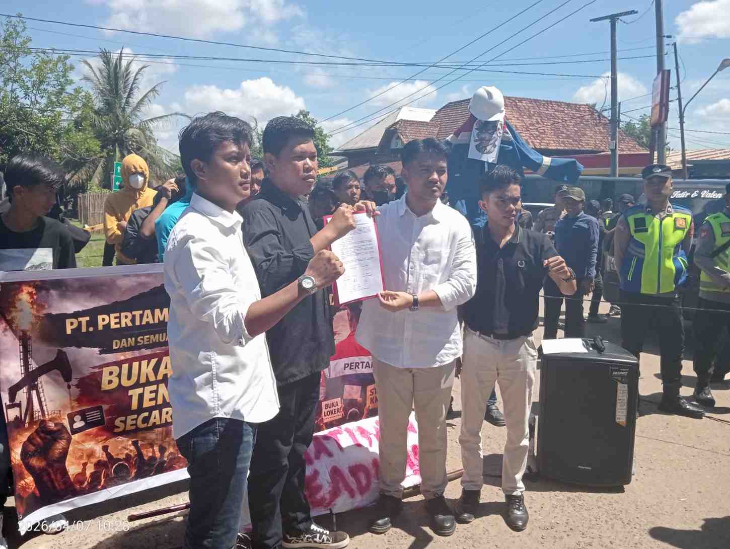 Sriwijayatoday.com, PALI, – Forum pemuda dan mahasiswa Kecamatan Tanah Abang menggelar aksi unjuk rasa di depan gerbang Pertamina Hulu Rokan Zona 4 Field Adera, yang berlokasi di Desa Pengabuan, Kecamatan Abab, kabupaten penukal Abab Lematang Ilir (PALI) Sumatera Selatan Selasa (7/4/2026).