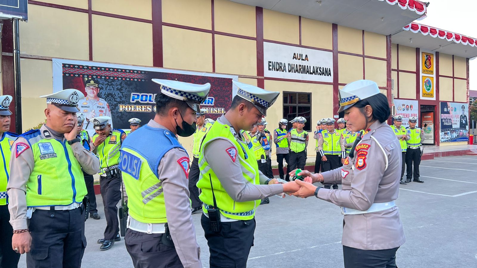 Dia pun membagikan vitamin, kepada personel Satlantas Polres Gowa, dalam rangka memberikan perhatian untuk menjaga kondisi tubuh kepada seluruh personel, agar lebih giat dalam tugas dan tanggung jawab.