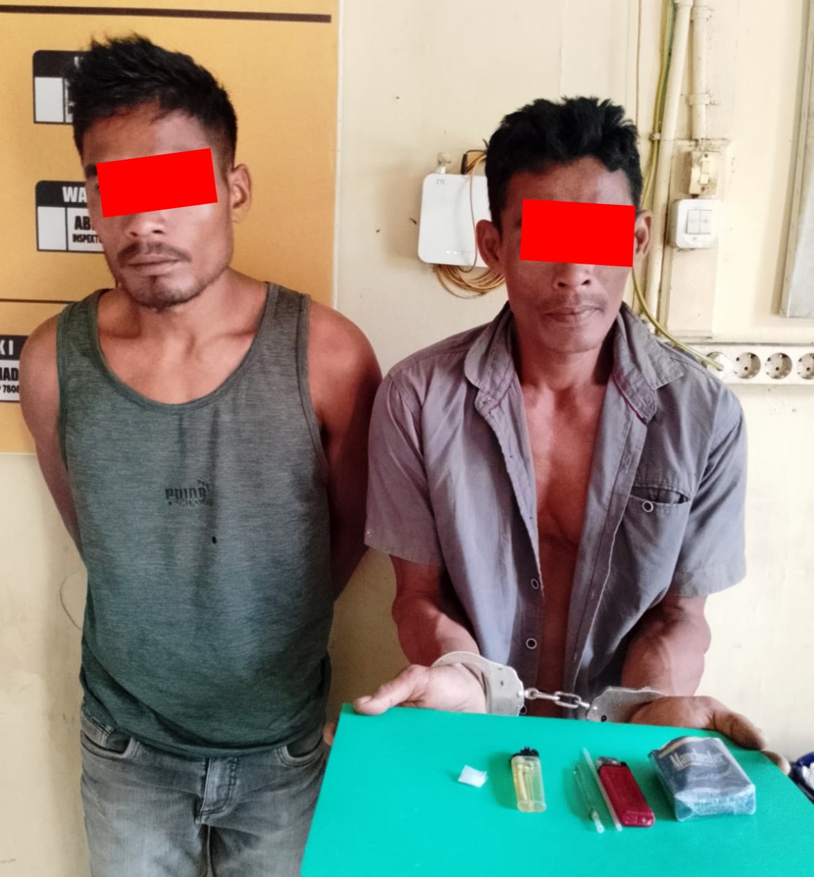 Disebutkan, setelah diamankan keduanya dilakukan pemeriksaan dan ditemukan barang bukti berupa satu paket narkotika yang diduga jenis sabu ukuran kecil yang terbungkus dengan plastik warna bening dari saku pelaku IS yang merupakan residivis pada kasus yang sama. Sedangkan dari saku celana pelaku NA petugas mengamankan 1 ( satu) buah kaca pirek, 2 (dua) buah korek api dan 1 (satu) buah pipet.