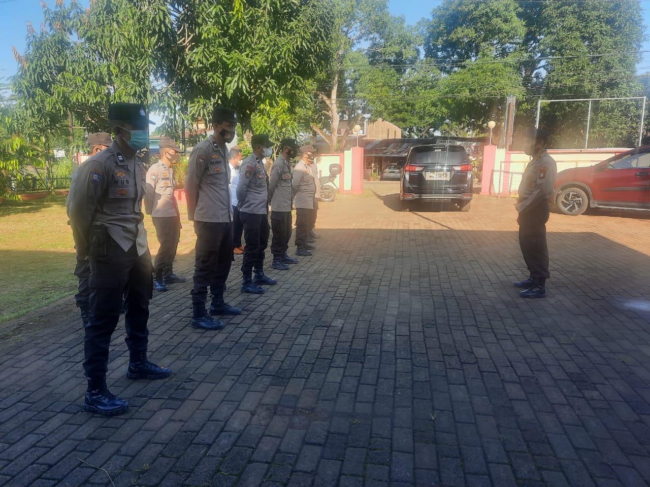 Dalam apel pagi terlebih dahulu pawas mengecek jumlah anggota melalui laporan danton untuk mengetahui kehadiran anggota, dalam kegiatan apel juga, Pawas menyampaikan laporan situasi selama 1×24 jam dan memberikan beberapa penekanan berkaitan dengan pelaksanaaan tugas sehari hari bahwa diharapkan seluruh anggota melaksanakan tugas Kepolisian dengan maksimal memberikan Pelayanan, Perlindungan dan Pengayoman kepada masyarakat serta penegakan hukum, dan untuk pemeriksaan diperketat baik yang keluar maupun yang masuk.