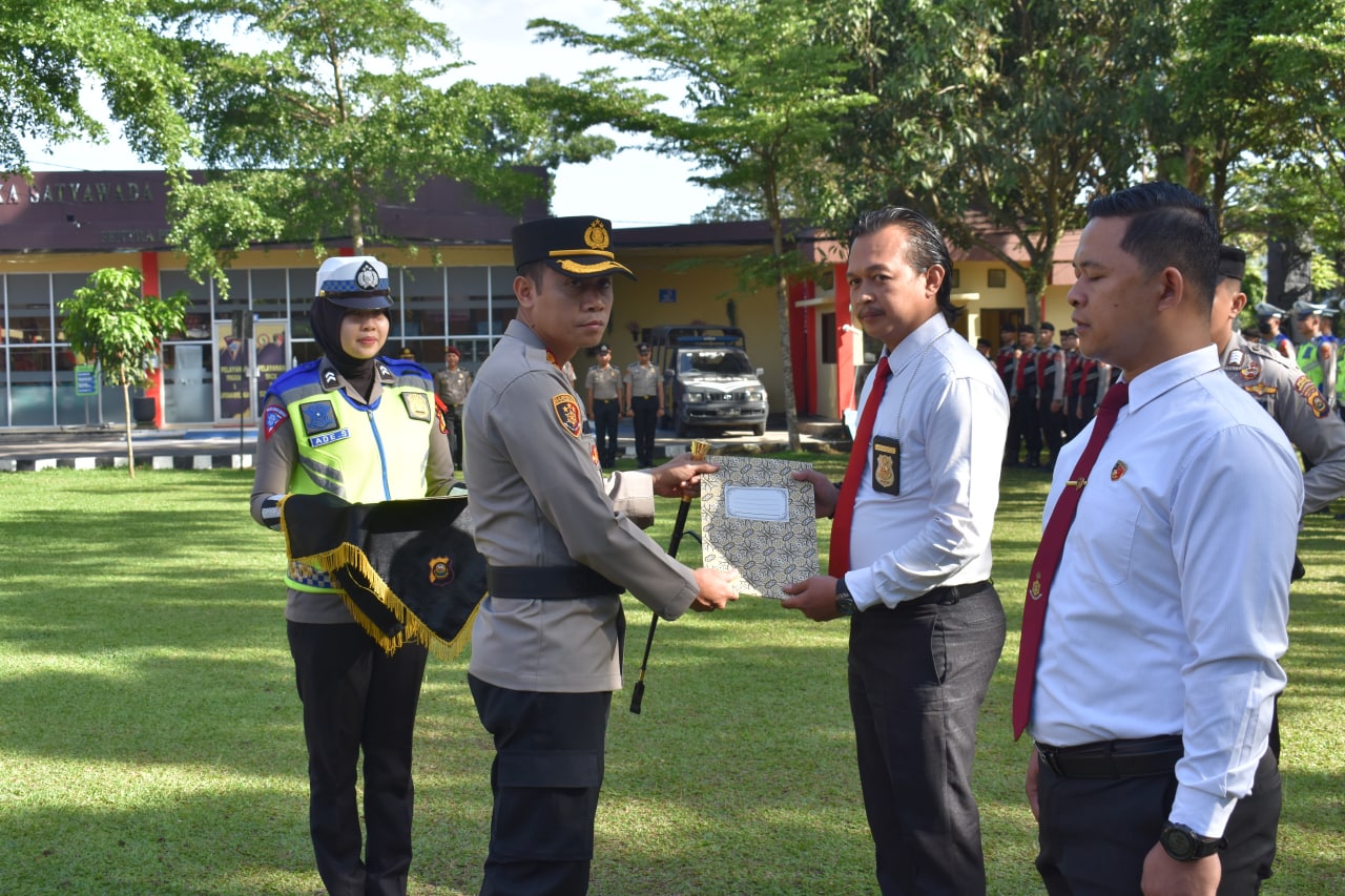 Sriwijayatoday.com Muara Enim Sumatera Selatan – Gelar upacara pemberian penghargaan kepada anggota berprestasi, Kapolres Muara Enim AKBP Andi Supriadi, S.H., S.Ik., M.H., pimpin langsung upacara pemberian reward.