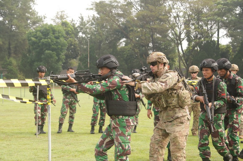 Sriwijajayatoday.com Jakarta. Salah satu materi pada puncak latihan Mobile Training Team Security Force Assistance Brigade (MTT SFAB) U.S.Army dan Yonif Mekanis Raider 411/Pandawa Kostrad adalah Military Operations in Urban Terrain (MOUT).