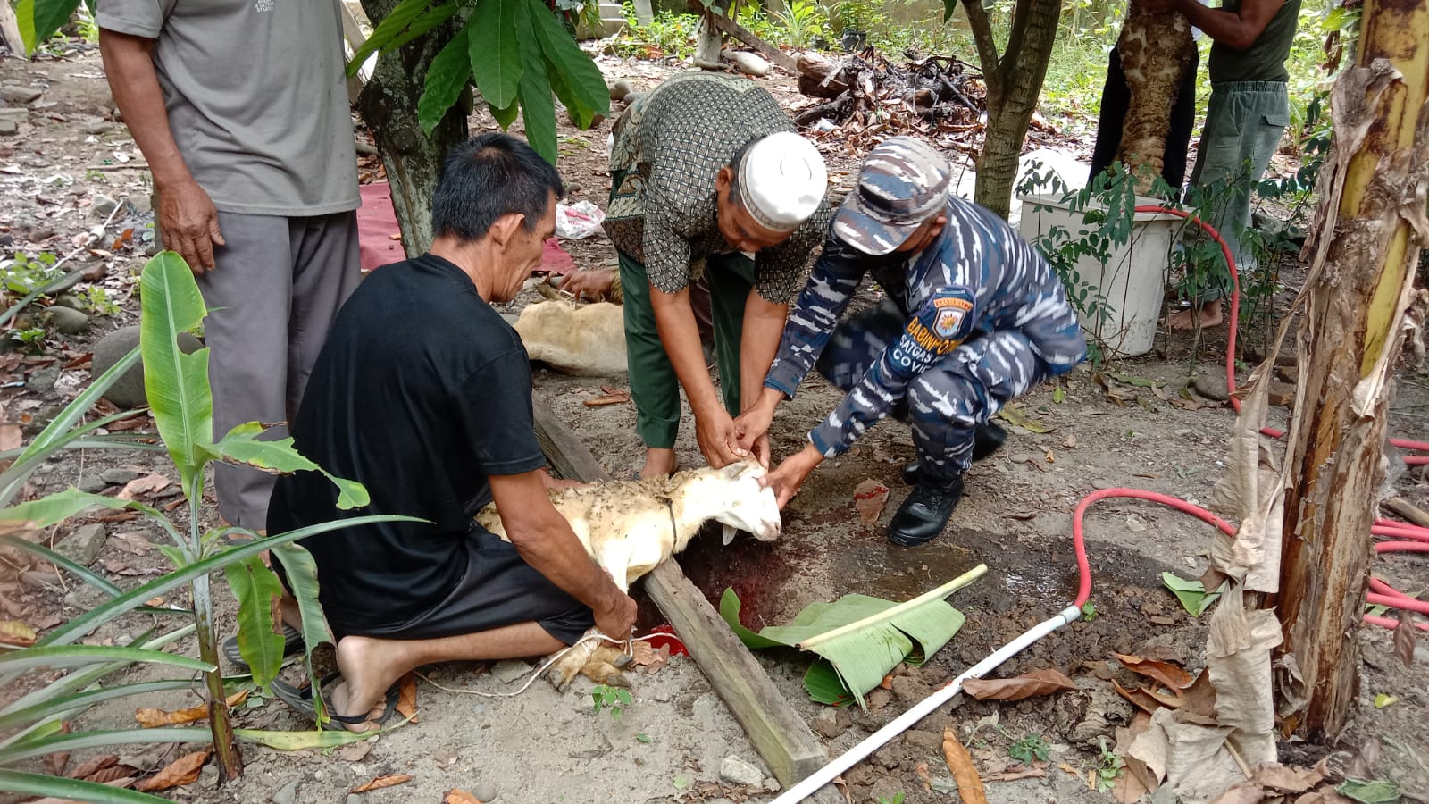 Sriwijayatoday.com Tanjung Balai,- Dalam rangka merayakan Hari Raya Idhul Adha 1443 H, Babinpotmar TNI AL Lanal TBA melaksanakan Komunikasi Sosial (Komsos) dengan berbaur dan membantu penyembelihan hewan kurban di desa binaannya masing-masing, Minggu (10/07/2022).