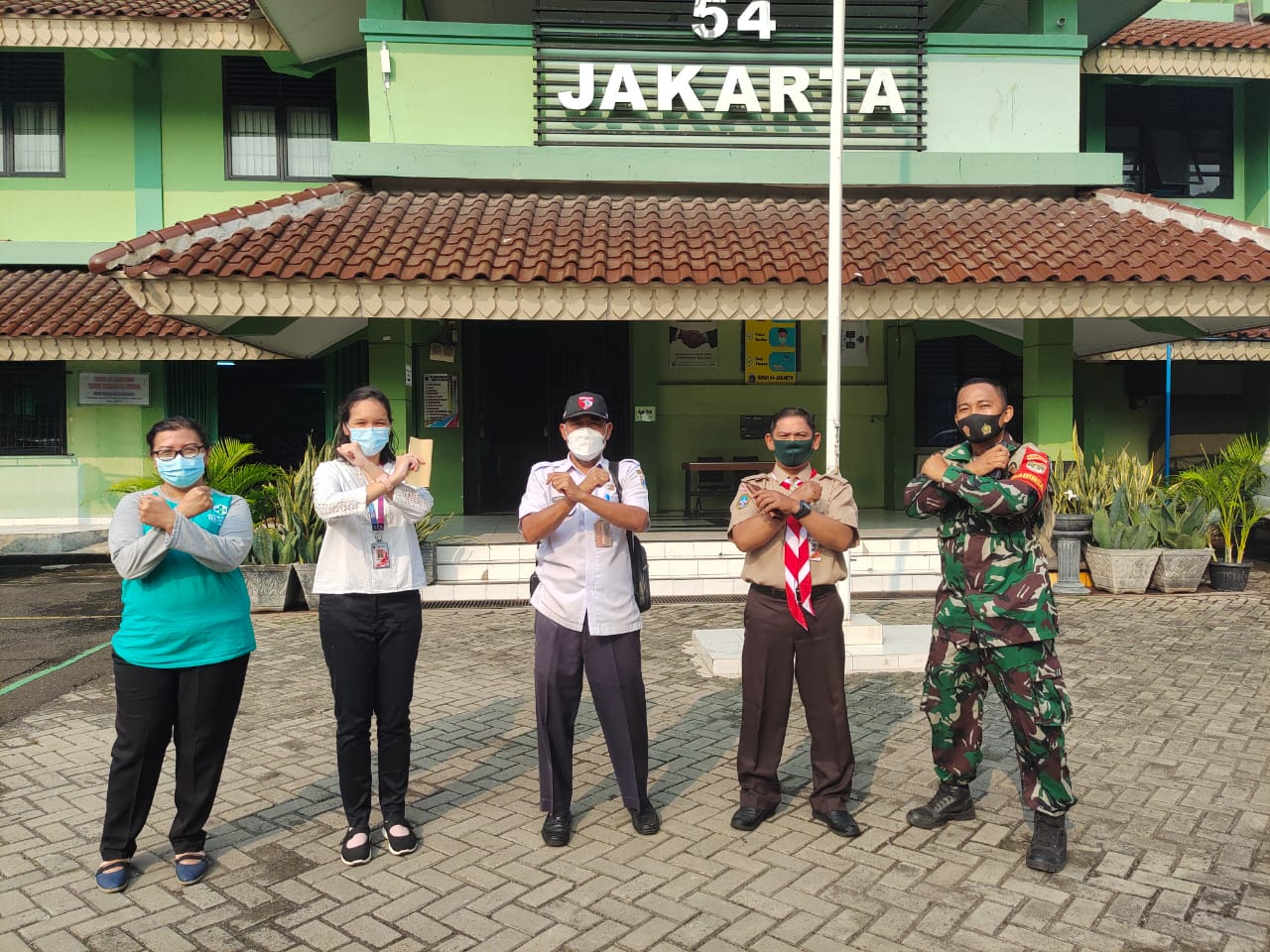 Sriwijayatoday.com Jakarta Pusat (9/6) Babinsa Kelurahan Serdang Serka Ahmad Fauzi memonitor kegiatan pra Simulasi tatap muka siswa siswi di SMKN 54 bersama Kepala Sekolah, staf Kelurah Serdang, dan dokter Puskesmas Serdang.