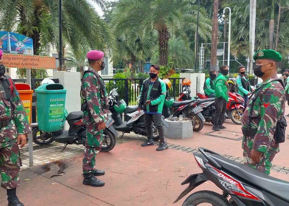 Seperti yang dilakukan pada Kamis (17/6/2021) ini, Babinsa Pelda Julisman dan Serka Herlambang anggota Koramil 04/Gambir mendampingi pasukan BKO Kodim 0501/JP BS dari Marinir dan Zipur melakukan patroli di halte termasuk halte busway dan halte Musium Gajah.