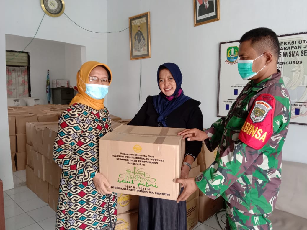 Sriwijayatoday.com Kodam Jaya, Kota Bekasi – Dalam rangka membantu serta meringankan beban para warakawuri dan Veteran seroja, YPPSDP (Yayasan Pengembangan Potensi Sumber Daya Pertahanan) memberikan bantuan sosial berupa paket sembako dan makanan yang turut dibantu pendistribusiannya oleh Babinsa Harapan Jaya Sertu Yajid dan Koptu Mat Nur.