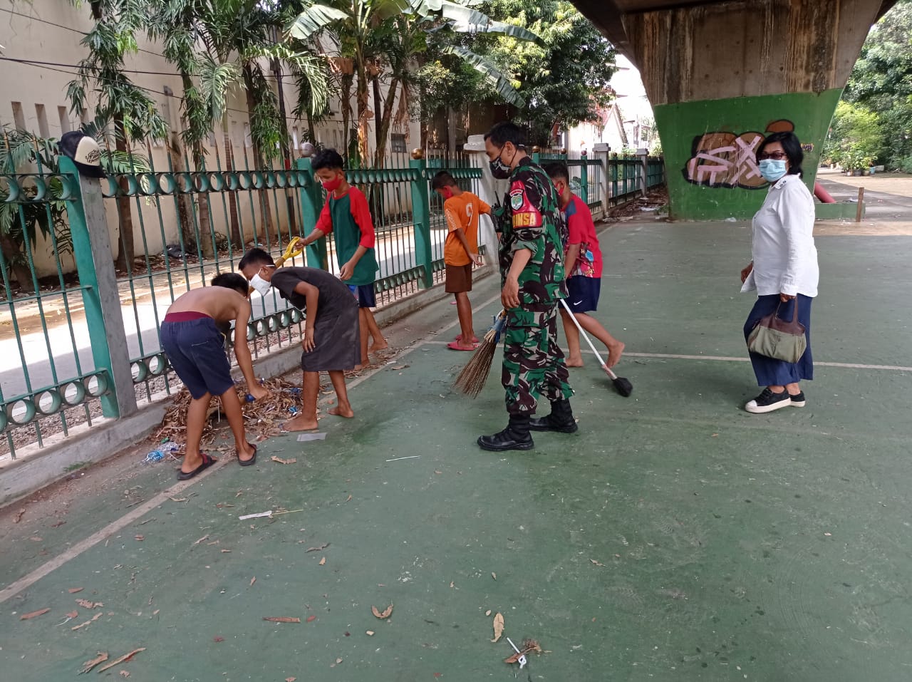 Sriwijayatoday.com Jakarta Babinsa Kelurahan Cikini Sertu Margiono dan Serda Muratno bersama PPSU dan Warga Melaksanakan kegiatan Karya Bakti dalam rangka memperingati Hari Lahirnya Pancasila Ke-76 membersihkan Sekitaran ruang interaksi terbuka kampung Benteng Pancasila di Jl. Gondangdia Lama Dalam RT3/RW05 Kelurahan Cikini. (1/6/21)