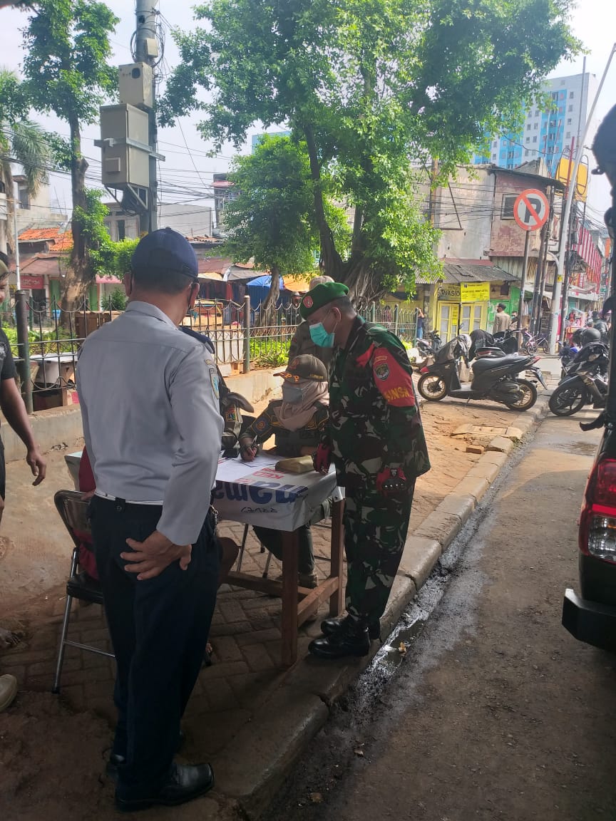 Sriwijayatoday.com Kodim 0505/JT – Upaya menekan laju penyebaran Covid-19 terus dilakukan Empat Pilar Muspika Jatinegara dengan melaksanakan kegiatan pemberlakuan pembatasan kegiatan masyarakat yang dipimpin Wakil Camat Jatinegara :Ibu Endang Kartika, bertempat di bawah Fly over Jembatan Kp. Melayu Jln. Jatinegara barat-1 Kelurahan Kp. Melayu Kecamatan Jatinegara, Sabtu (08/05/21).