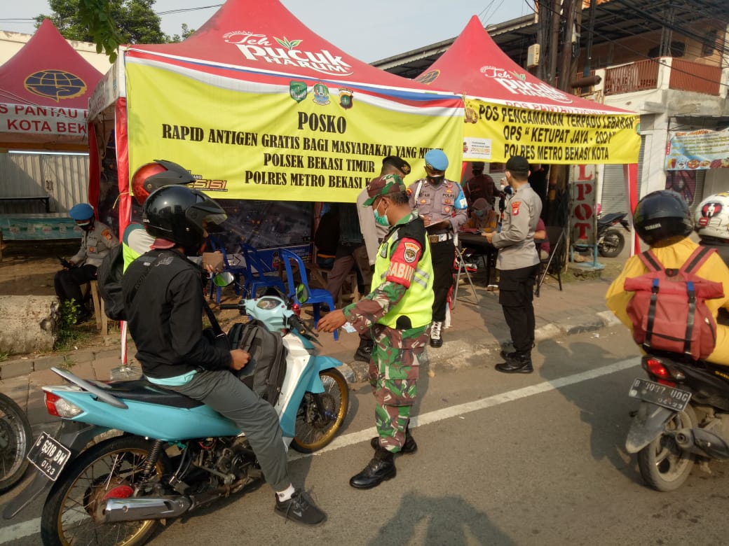 Untuk memastikan bahwa para pemudik aman dari Covid-19, Babinsa bersama unsur terkait yang diantaranya tim medis dari Dinkes Kota Bekasi melakukan Swab Antigen secara Acak kepada warga Khususnya yang berplat nomor polisi luar daerah.