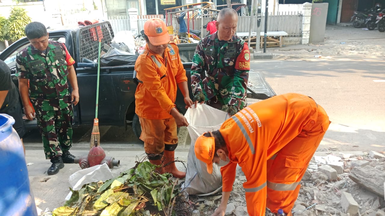 Babinsa Koramil Cakung Ajak Mitra Bersihkan Sampah Lingkungan