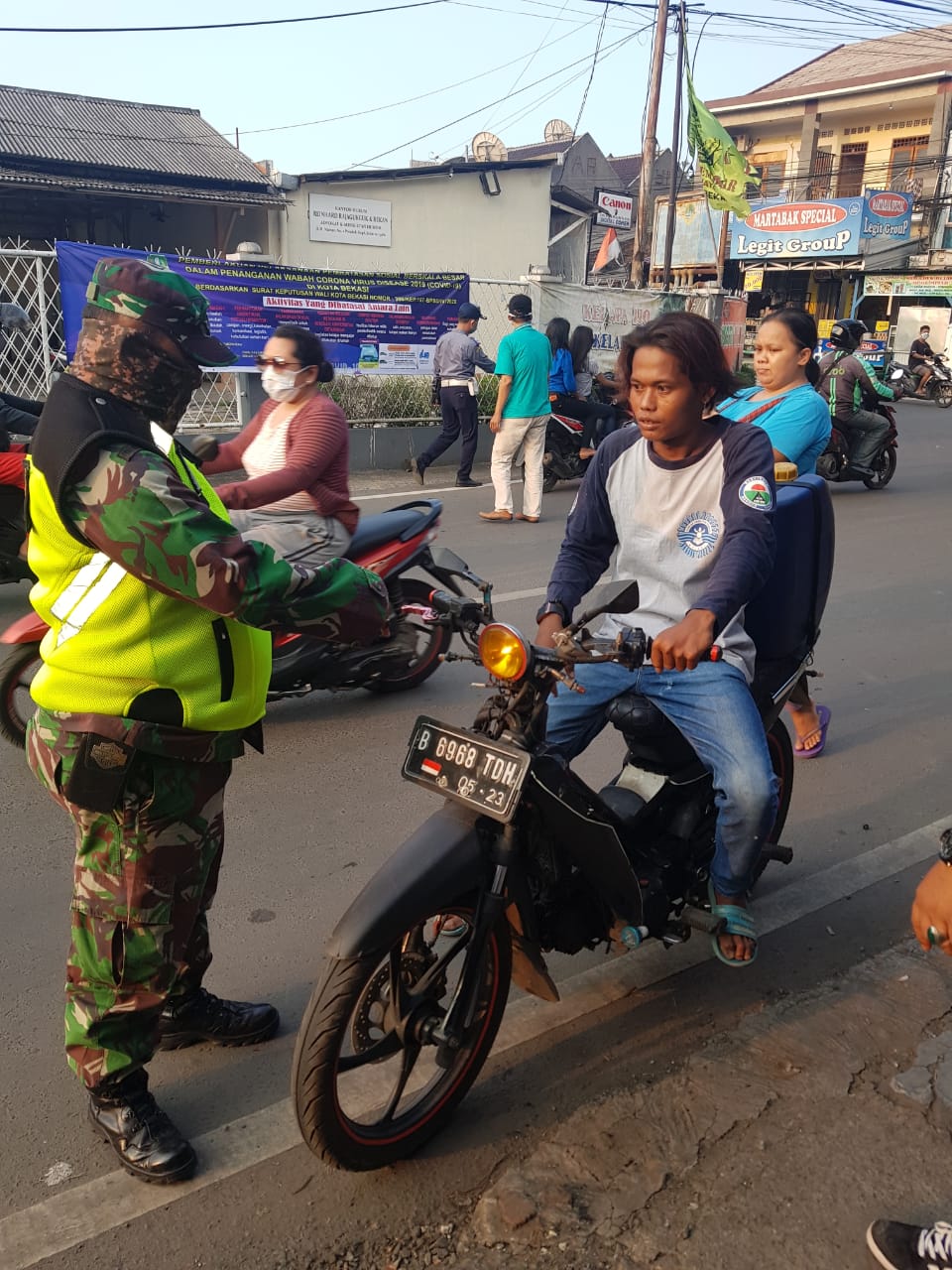 Sriwijayatoday.com Kodam Jaya, Kota Bekasi – Dalam upaya menciptakan masyarakat yang sehat dan terhindar dari wabah virus Corona atau Covid-19, Babinsa Koramil 01/Kranji Kodim 0507/Bekasi Peltu Julhendri bersama dua rekannya terus merespons setiap kondisi dan keadaan lingkungan masyarakat binaannya, apalagi yang berhubungan dengan wabah Covid-19 saat ini.