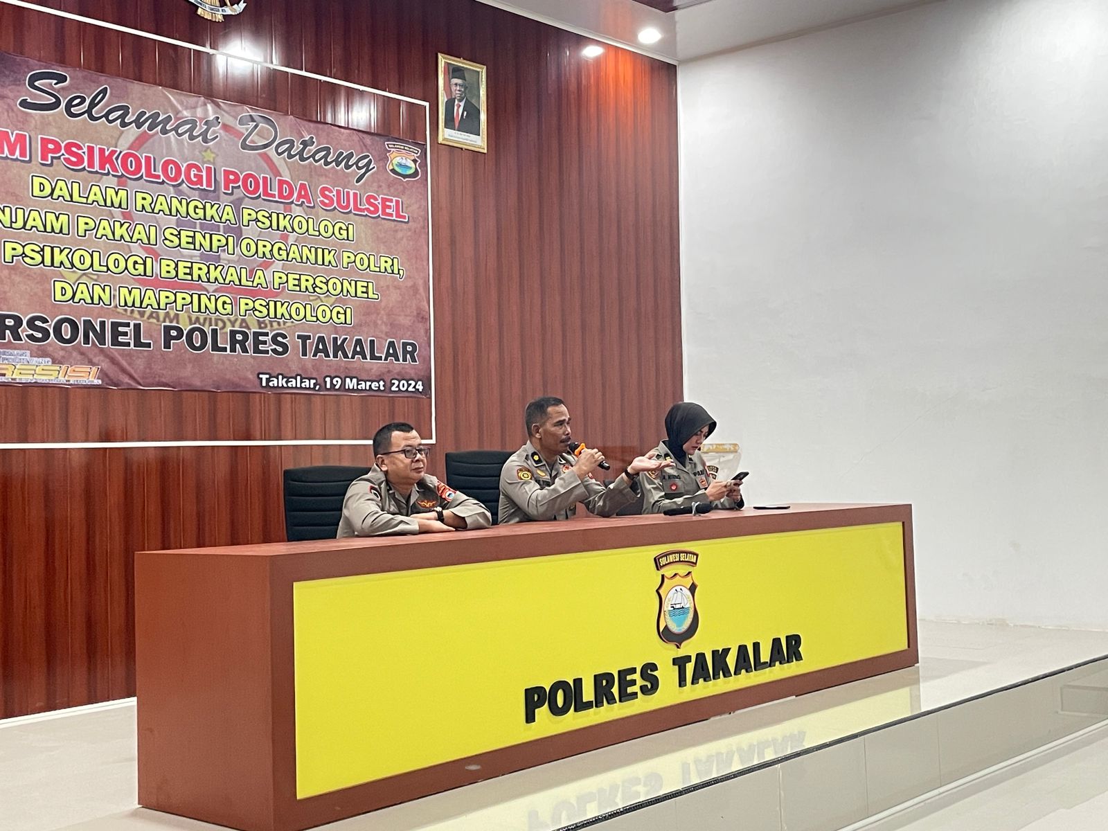 SRIWIJAYATODAY.COM//TAKALAR-SULSEL, Bagian Psikologi Biro SDM Polda Sulawesi Selatan melaksanakan kegiatan pemeriksaan Psikologi dalam rangka Pinjam Pakai Senpi Organik Polri, Pemeriksaan Psikologi Berkala dan Mapping Psikologi kepada Personel Polres Takalar, Jeneponto dan Bantaeng.