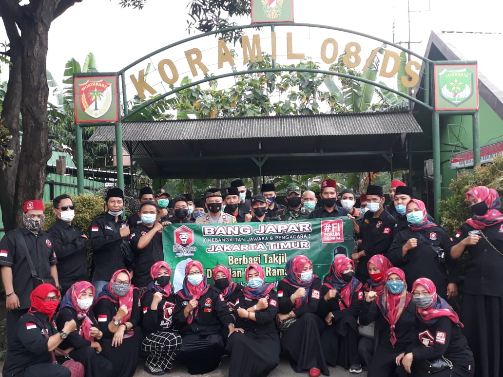 Sriwijayatoday.com Jakarta – Organisasi Bang Japar yang dikomandoi Ibu Fahira Idris sebagai Ketua Umum terus Sinergis dalam melakukan Kegiatan sosial di bulan Ramadhan bersama 3 Pilar di Kecamatan Duren Sawit Jakarta Timur, kali ini Bang Japar di wilayah Komcam Duren Sawit Jakarta Timur bersama Polsek Duren Sawit, Koramil Duren Sawit, Bhabinkamtibmas, Babinsa, Satpol PP, Tokoh Masyarakat Duren Sawit seperti Ayah H. Sayadi, Wanhat Bang Japar Jaktim Bang Haji Ferry, dan Habib Zuhdy mengadakan kegiatan rutin membagikan Takjil Gratis dibulan suci Ramadhan 1442 H sebanyak 600 paket Takjil sekaligus santunan yatim piatu dan doa bersama Anggota Bang Japar Komcam Duren Sawit yang sudah wafat.