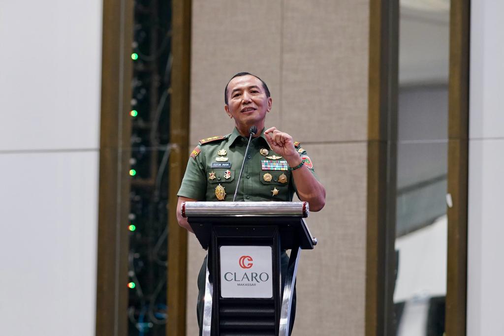 Sriwijayatoday.com // Makassar – Pastikan kesuksesan pelaksanaan demokrasi rakyat 2024, Pangdam XIV/Hasanuddin Mayjen TNI Dr. Totok Imam Santoso, S.I.P., S.Sos., M.Tr (Han)., menghadiri sekaligus sebagai Pemateri pada Rapat Koordinasi (Rakor) bersama Forum Komunikasi Pimpinan Daerah (Forkompinda) dengan para Kepala Desa se-Sulawesi Selatan, bertempat di Hotel Claro, Kota Makassar. Senin (23/10/2023).