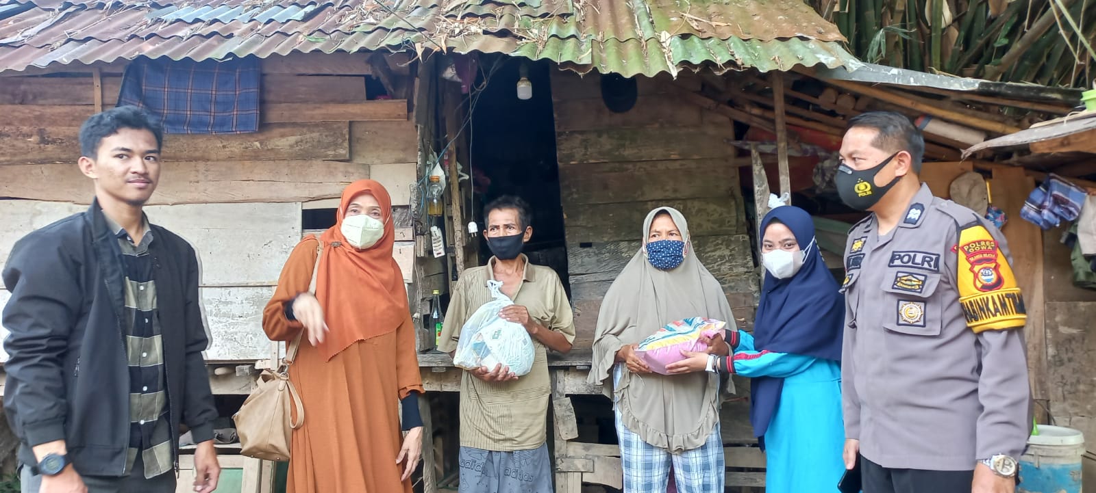 Sriwijayatoday.com // Gowa-Sulsel, Bhabinkamtibmas Kelurahan Borongloe Polsek Bontomarannu Polres Gowa Aiptu Muh.Tahir bersama dengan Dosen Universitas Muhammadia Makassar menyerahkan bingkisan berupa sembako kepada warga prasejahterah, Jumat (15/04/2022).