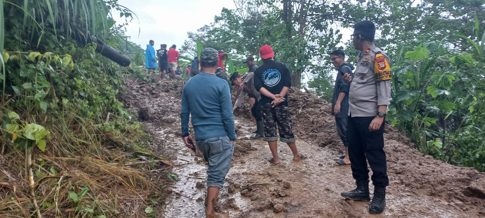 Kapolsek pun menuturkan, terkait terjadinya tanah longsor ini tidak ada korban jiwa dan materil dalam kejadian tersebut.