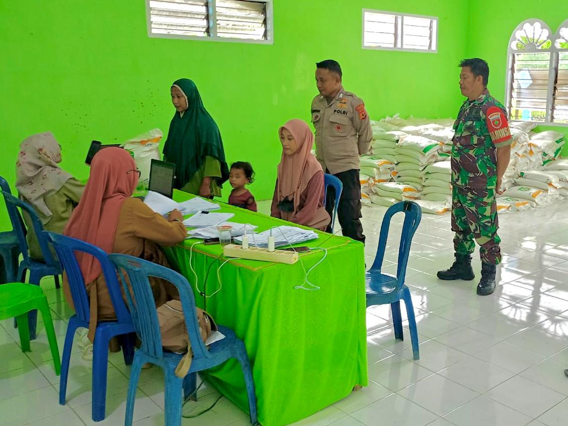 Bhabinkamtibmas Bripka Hamsyarullah juga memberikan himbauan kepada masyarakat agar tetap menjaga ketertiban saat pembagian beras.