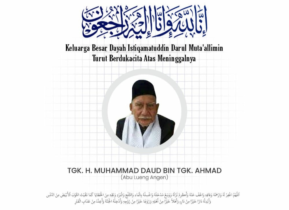 Telah bepulang kerahmatullah Abu Lhok Nibong/Abu lueng Angen (H.M.DAUD BIN AHMAD) pukul 07.30 hari minggu 19 juni 2022 di RSUZA,” demikian tulis Tgk H Faisal Ali di group Tastafi.