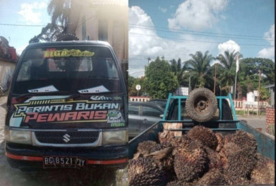Satu dari ketiga pelaku berhasil diamankan Tim Trabazz Polsek Gunung Megang berserta barang bukti berupa satu unit mobil Suzuki Carry, dan 120 tandan sawit siap angkut.