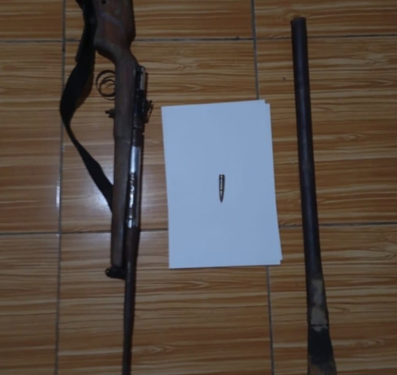 Selain mengamankan kedua pelaku, polisi juga berhasil mengamankan barang bukti berupa, satu pucuk senjata api rakitan laras panjang, satu bilah pisau, satu butir peluru panjang, satu buah linggis, dua buah kunci (T), dan satu unit Hp merek Realme 6 Pro milik korban.