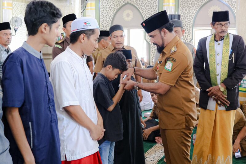 Dalam rangkaian kegiatan tersebut, Bupati Aceh Timur, Iskandar Usman Al-Farlaky, S.H.I., M.Si., turut menyerahkan santunan kepada anak yatim piatu.