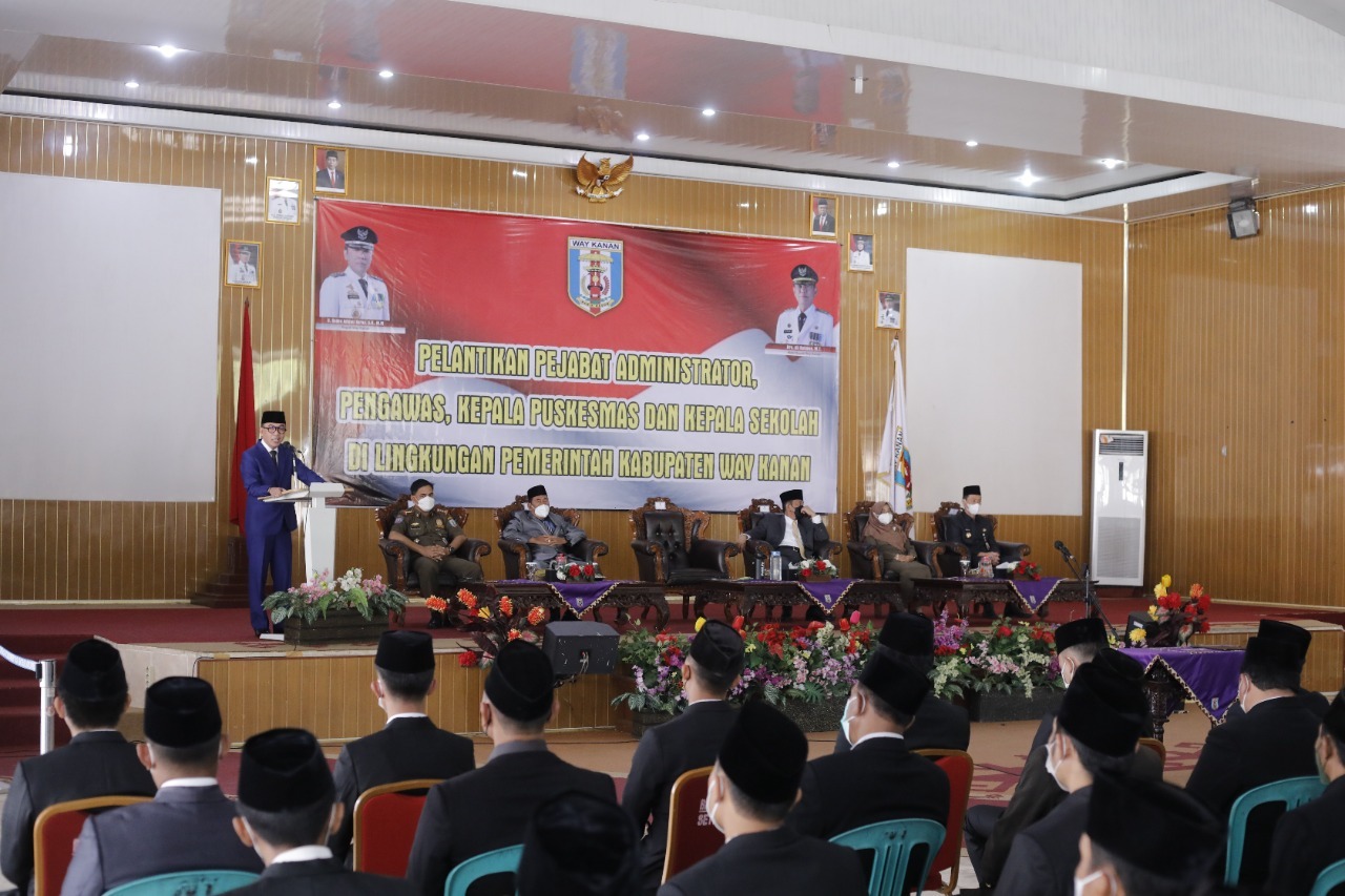 Tampak hadir Wakil Bupati Way Kanan, Sekda, Staf Ahli Bupati, Para Asisten, Sekretaris DPRD, Inspektur Kabupaten, Kepala Badan, Kepala Dinas, dan Kepala Bagian di Lingkungan Pemerintah Kabupaten Way Kanan, Para Pegawai Negeri Sipil yang dilantik dan tamu undangan.