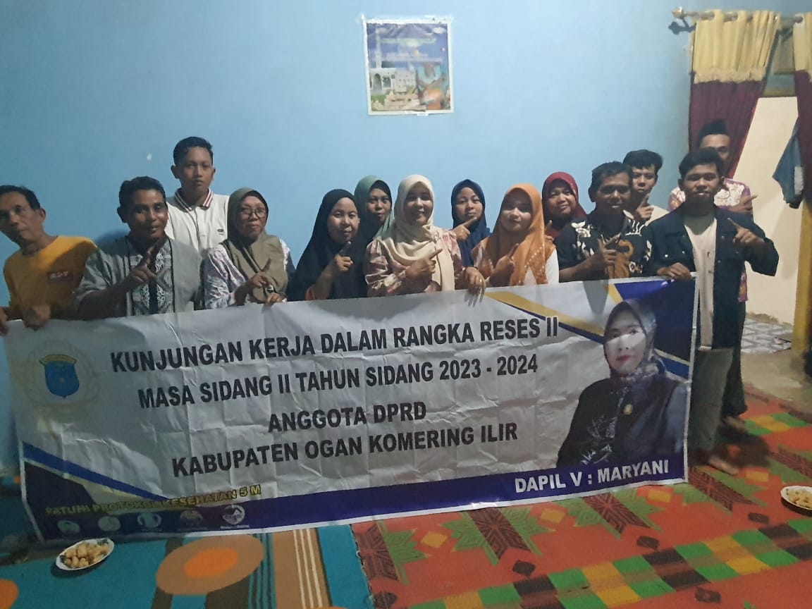 Dalam kunjungan kerja untuk menampung aspirasi masyarakat selaku Anggota DPRD terpilih dari Dapil Masing Masing.”Anggota Dewan Perwakilan Rakyat Daerah (DPRD) Kabupaten Ogan Komering Ilir (OKI) Sumatera Selatan (Sumsel) sesuai dengan Program DPRD Kab OKI, Maryani , salah satu Anggota DPRD yang terpilih dari Dapil V asal Fraksi Gerindra Kembali gelar Kunjungan Kerja (Kunker) Ke Dapil V tempat Wilayah Terpilihnya sesuai dengan Program DPRD Kabupaten OKI ke Wilayah Dapil Masing Masing.