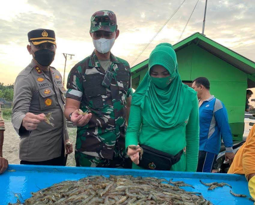 Kedatangan Dandim 0103/Aut beserta rombongan didampingi Kapolres Lhokseumawe bersamaan dengan panen raya perdana udang vaname binaan Kodim 0103/Aceh Utara.