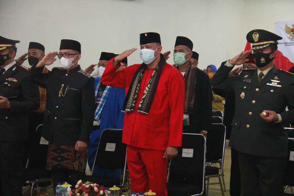Sriwijayatoday.com Kodam Jaya, Kota Bekasi – Bertempat di Aula Media Centre Patriot Chandrabaga Kota Bekasi, Dandim 0507/Bekasi Kolonel Arm Iwan Aprianto,S.I.P., bersama Forkopimda Kota Bekasi ikuti upacara peringatan hari pancasila, Selasa (01/06/2021).