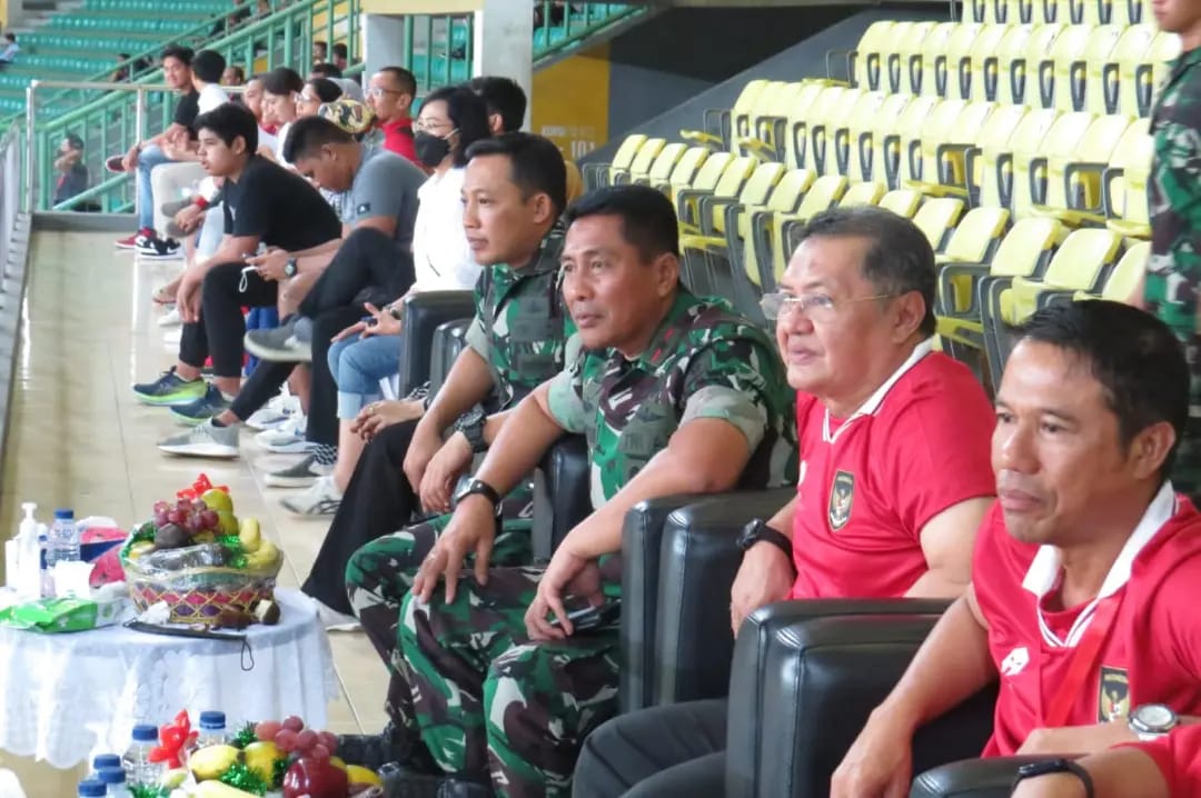 Dalam peninjauan kali ini Danrem 051/Wkt beserta Kapolres, Dandim dan yang lainnya juga turut menyaksikan pertandingan sepakbola antara Tim kesebelasan Indonesia melawan