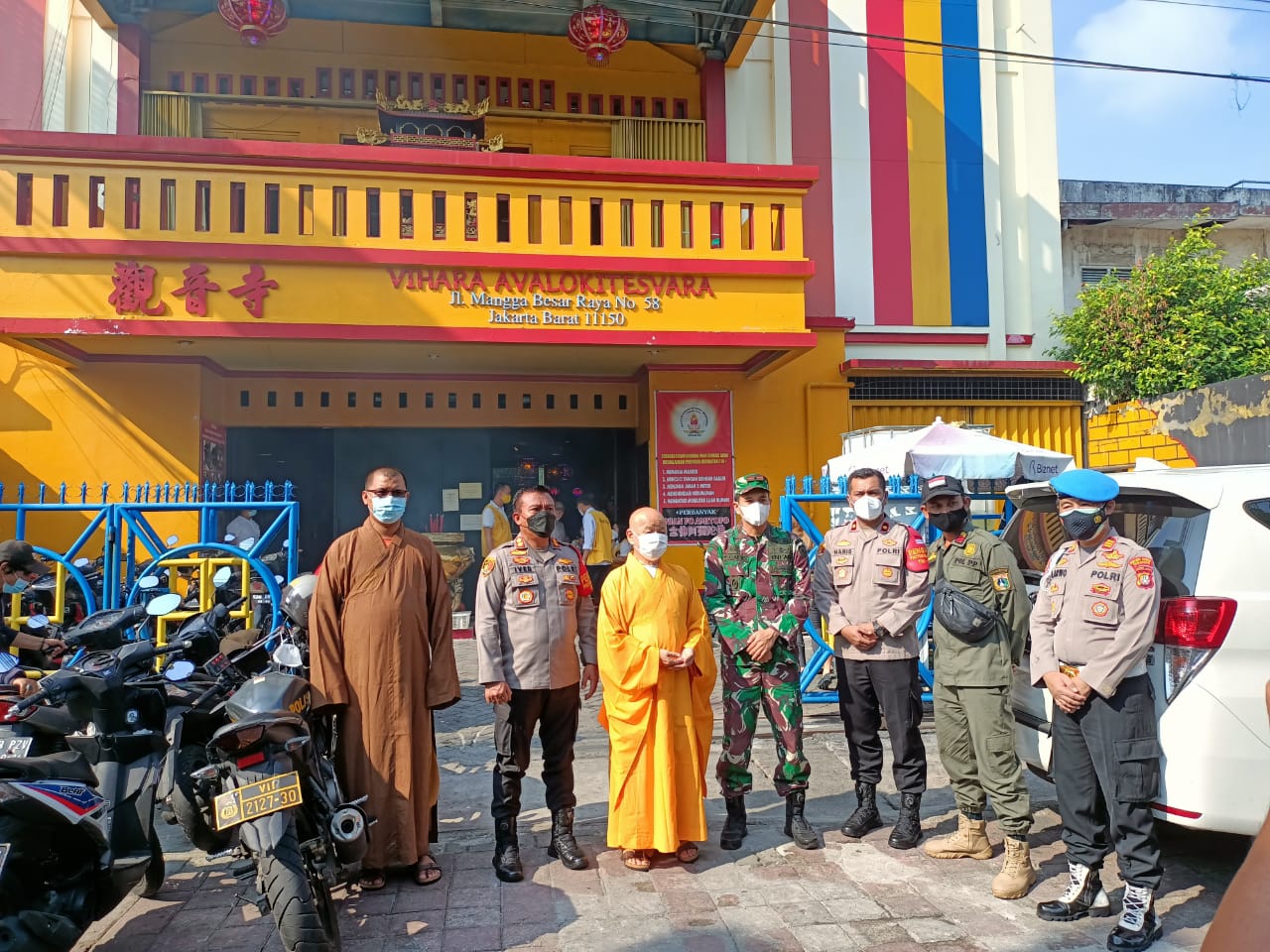 Kehadiran Danramil 01/TS Mayor Inf Zulkarnaen Galib dalam rangka Pemantauan dan Pengamanan Giat sembahyang Tri Suci Waisak Tahun 2565 Be / Tahun 2021 bersama Kapolsek Tamansari AKBP Iverson Manosoh S.H