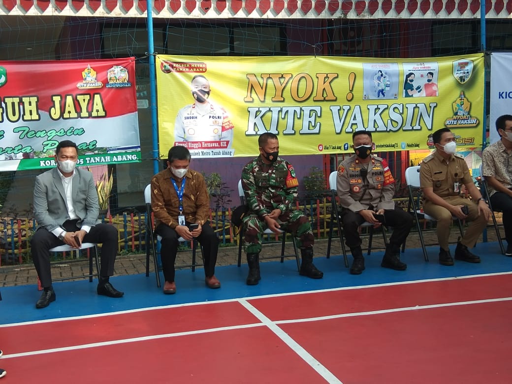 Vaksinasi yang diselenggarakan di RPTRA Segas Berseri Jl. KPBB I RT. 04 RW. 06 Kel. Karet Tengsin Kec. Tanah Abang Jakpus, turut dihadiri oleh Kapolsek Metro Tanah Abang Kompol Singgih, Danramil 05/TA Mayor Arh Saryono, Wakil Camat beserta jajaran dibawahnya, PT.Astra TBK, dan ara ketua RW setempat.