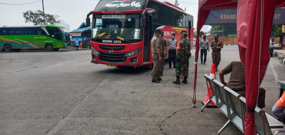 Sriwijayatoday.com – Jakarta – dalam rangka penyekatan arus mudik di Terminal Bus Kalideres, Danramil 06/KD Kapten Inf Abdul Kholik bersama Tiga Pilar Kalideres melaksanakan kegiatan pemeriksaan kelengkapan surat swab antigen dan Genose C 19 bagi masyarakat yang datang ke Jakarta. Sabtu (29/05/2021)