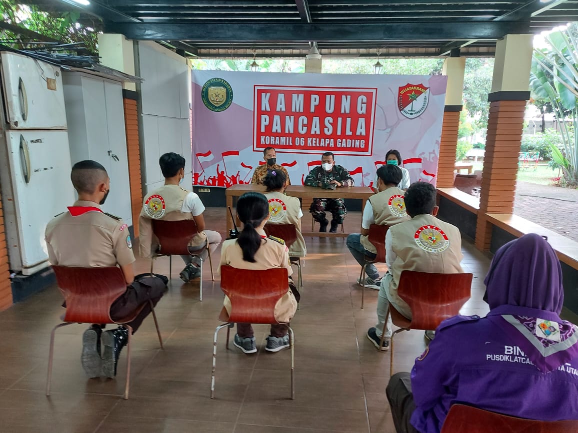Sriwijayatoday.com Jakarta Utara. Danramil 06/KG memberikan pembekalan kepada Pelopor Kampung Pancasila bertempat di Posko Kampung Pancasila Komplek Gading Kirana Jl.Gading Kirana timur 2 taman blok H. RT.04 RW.08 Kel.Kelapa Gading Barat Kec.Kelapa Gading, Sabtu (01/5/2021).