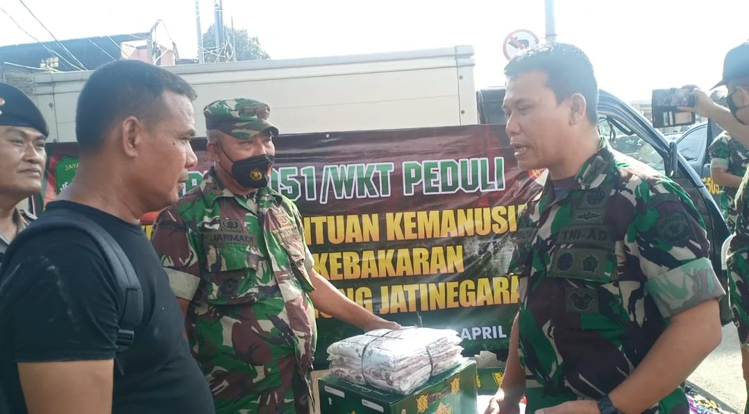 Bantuan yang diberikan berupa alat perlengkapan untuk sholat dan Pakaian layak pakai untuk anak-anak dan dewasa kepada warga yang mengalami musibah kebakaran tersebut merupakan salah satu bentuk perhatian serta kepedulian Korem 051/Wkt dan Kodim 0505/JT kepada warga binaan teritorialnya, dimana pemberian bantuan tersebut langsung di serahkan oleh Dandim 0505/JT yang didampingi Danramil Mayor Czi Jarmadi, Camat Jatinegara, Lurah CBU, ACT dan FKDM.