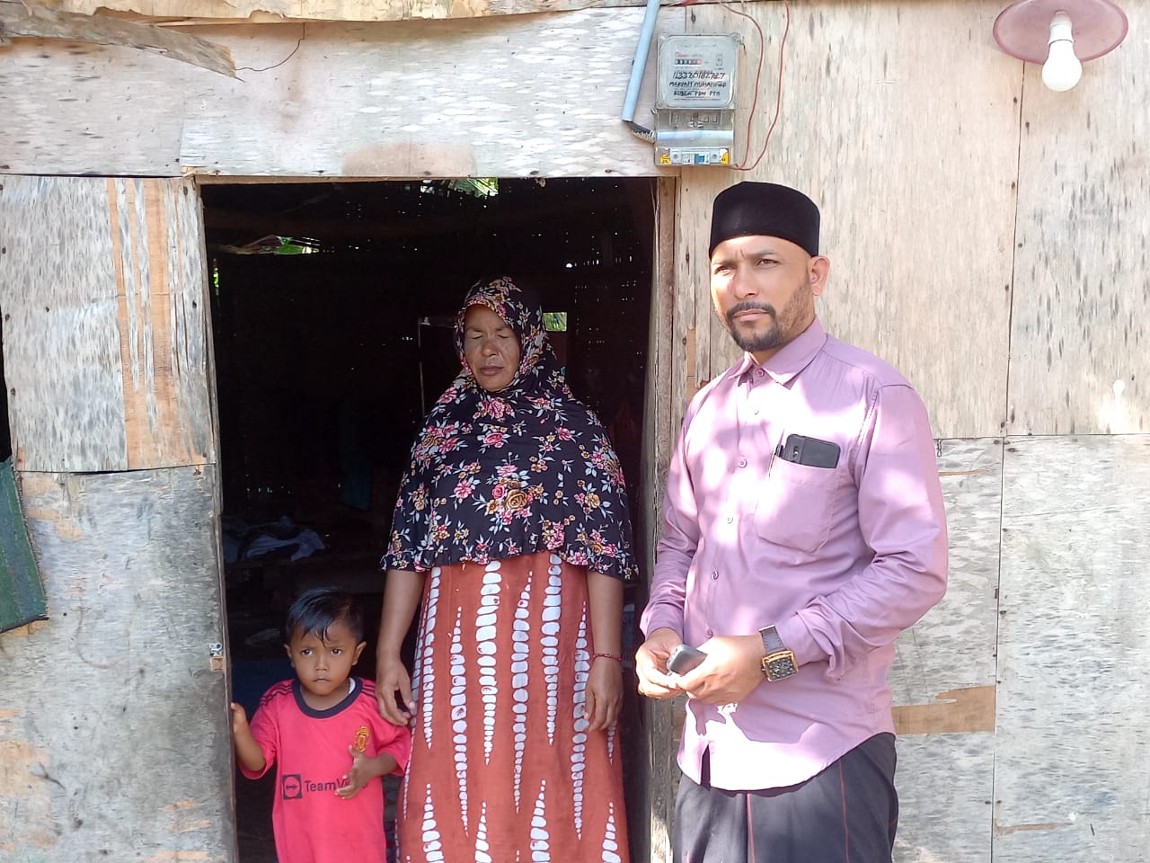 Dirumah tersebut dirinya tinggal bersama suami yang bekerja sebagai nelayan tradisional dan empat orang anak dengan kondisi yang memprihatinkan.