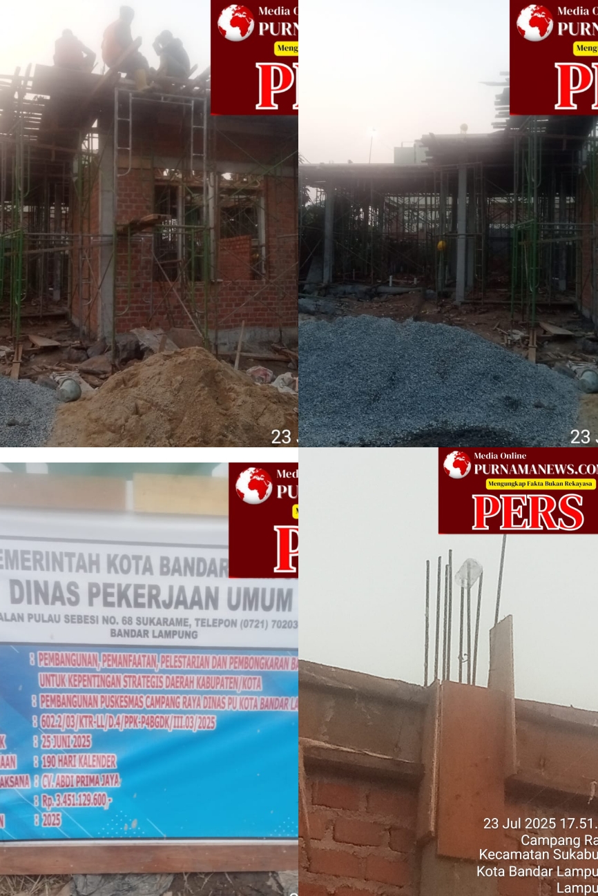 Bandar Lampung Sriwijayatoday.com 31 Juli 2025 ,Diduga pembangunan puskesmas campang yang tidak sesuai spesifikasi dan gambar kerja ,saat di konfirmasi arif selaku konsultan pengawas dari dinas PU dan Dwi selaku kontrak tor tidak respon dan menjawab konfirmasi awak media