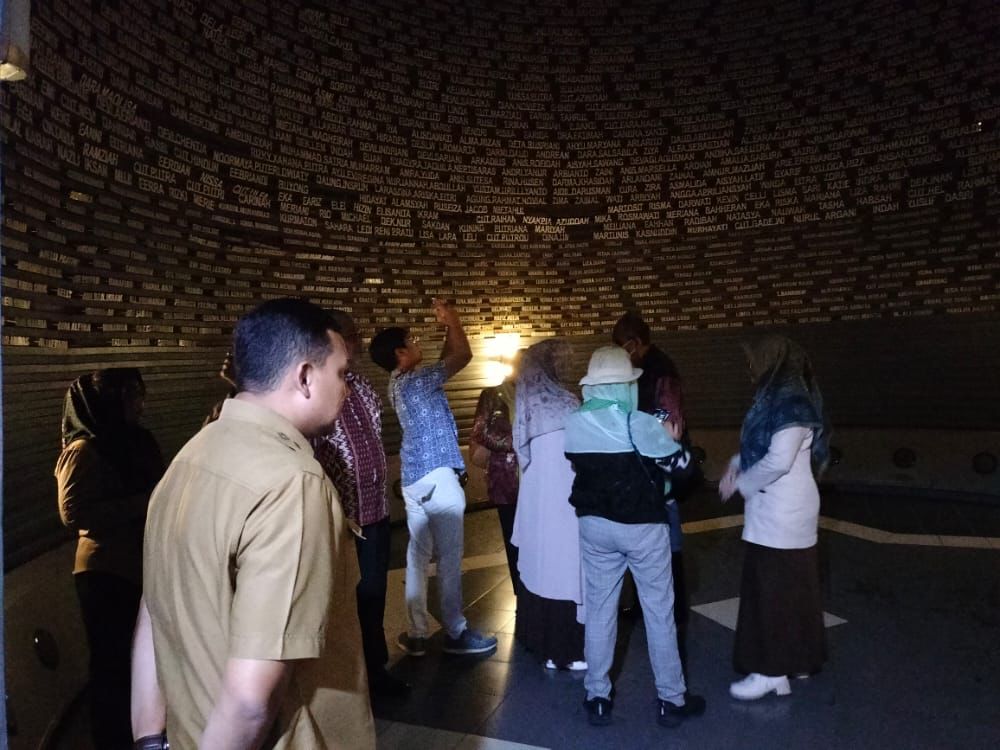 Para rombongan diajak berkeliling melihat gedung mahakarya dari Ridwal Kamil serta sejumlah koleksi yang ada di Museum Tsunami.