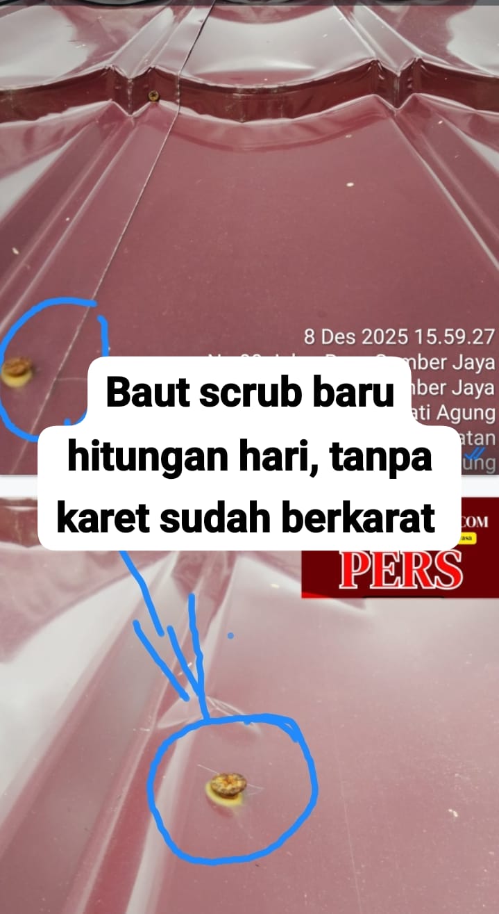 Yang lebih terlihat pemasangan baut atap multirup baut tidak ada yang pakai karet hingga terlihat hitungan hari susah berkarat ,ini contoh jika pekerjaan tidak sesuai spesifikasi dan teknis kerja
