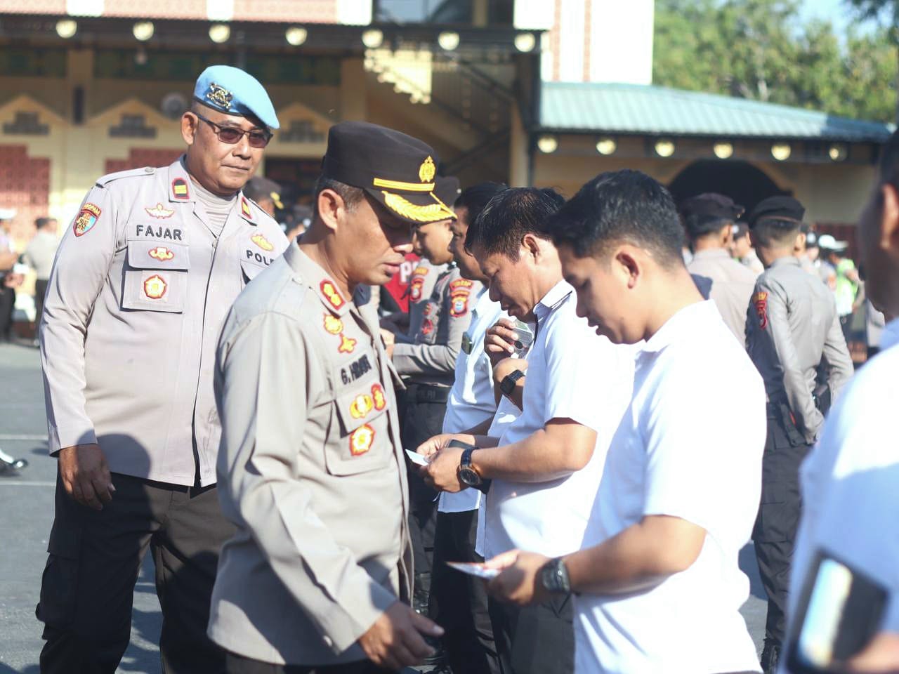 Didampingi Kasi Propam Iptu Sri Muhammad Fajar, Kapolres Takalar AKBP Gotam Hidayat S.I.K., M.Si melaksanakan pengecekan sikap tampang dan administrasi perorangan anggota.