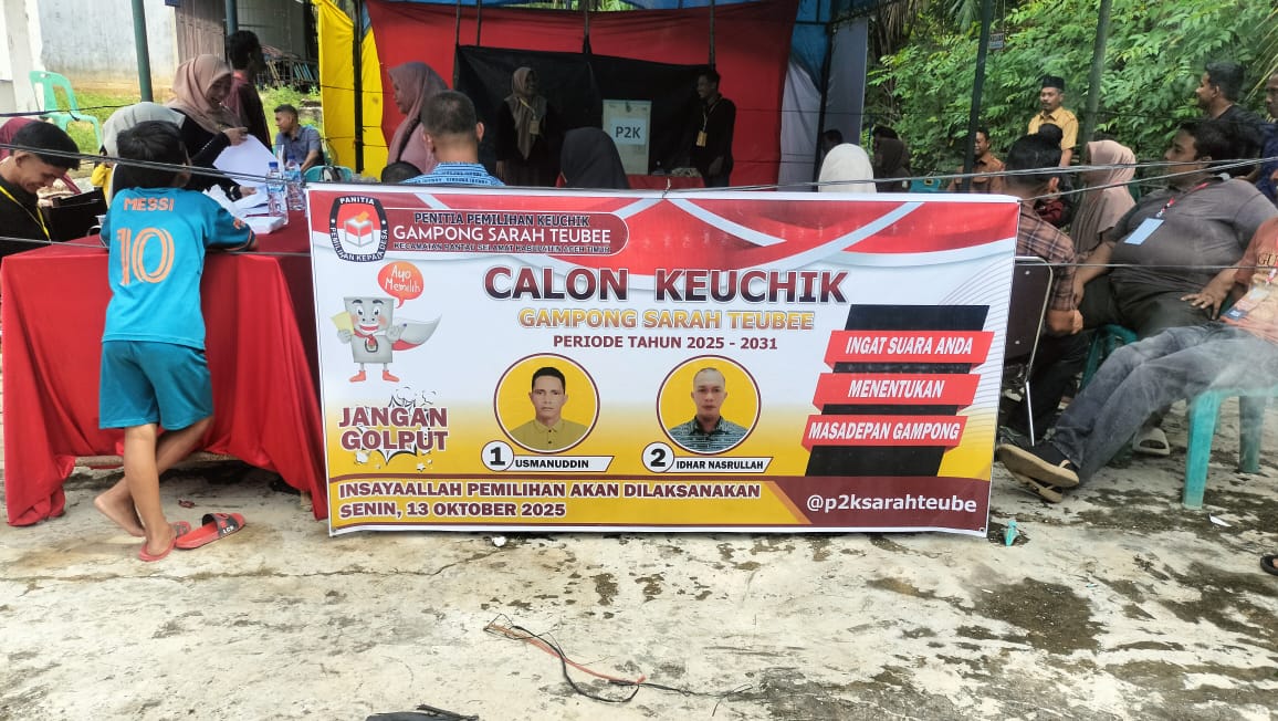 Sarah Teube, Aceh Timur | Sriwijayatoday.com – Proses Pilih Geuchik Gampong Sarah Teube Kecamatan Rantau Selamat kabupaten Aceh Timur periode 2025-2031 dilaksanakan oleh satu kepanitiaan yaitu Panitia Pemilihan Keuchik (P2K) yang diketuai Muhammad Yani. Kepanitiaan sudah bekerja sejak dua bulan terakhir melakukan berbagai persiapan hingga sampai ke hari H yaitu tahap pencoblosan.