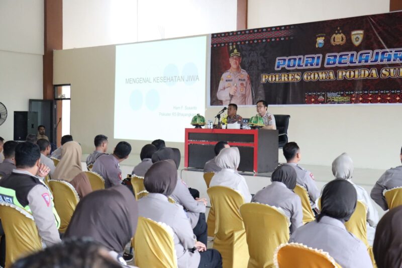 SRIWIJAYATODAY.COM // GOWA-SULSEL Polres Gowa melalui Urusan Kesehatan (Urkes) Bag SDM Polres Gowa mengadakan Sosialisasi Kesehatan Jiwa Bagi Personil Polres Gowa, bertempat di Gedung serba Guna Polres Gowa, Selasa (14/3/2023).