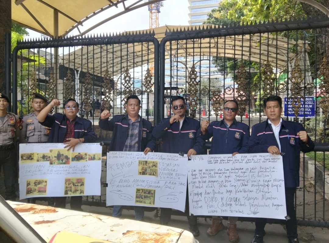 Sriwijayatoday.com – Sekelompok pemuda dari Kabupaten Muara Enim yang menamai diri sebagai Lembaga Aliansi Indonesia Badan Peneliatan Aset Negara (LAI BPAN) Dewan Perwakilan Cabang Muara Enim menggelar aksi unjuk rasa di depan Kantor Kejaksaan Agung Republik Indonesia. Rabu (22/04/2026).