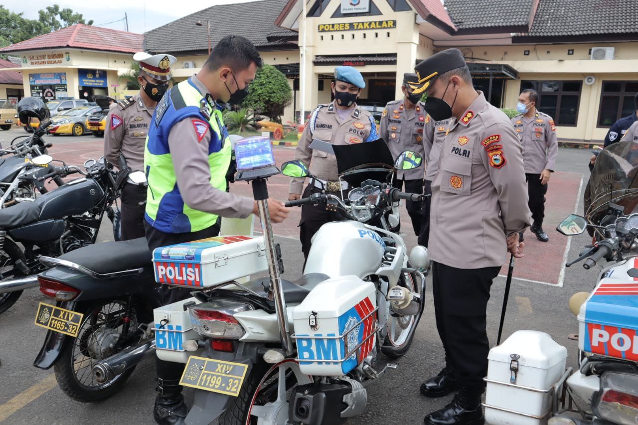 Dalam kesempatan tersebut Kapolres Takalar yang didampingi para Kabag dan Kasat langsung mengecek/memeriksa kendaraan dinas baik dari segi kebersihan, fungsi, dan menyarankan agar melakukan penggantian stiker serta pengecetan yang sudah kusam.