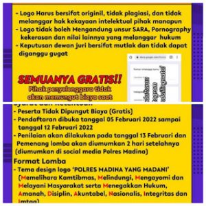Polres Mandailing Natal menggelar sayembara desain logo “Polres Madina yang Madani” dengan total hadiah sebesar Rp. 15,5 juta.
