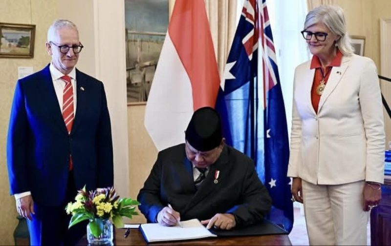 Sriwijaya Today – Presiden RI Prabowo Subianto disambut oleh Gubernur Jenderal Australia Sam Mostyn dalam upacara kenegaraan yang digelar di Admiralty House, Sydney, Rabu (12/11/2025).