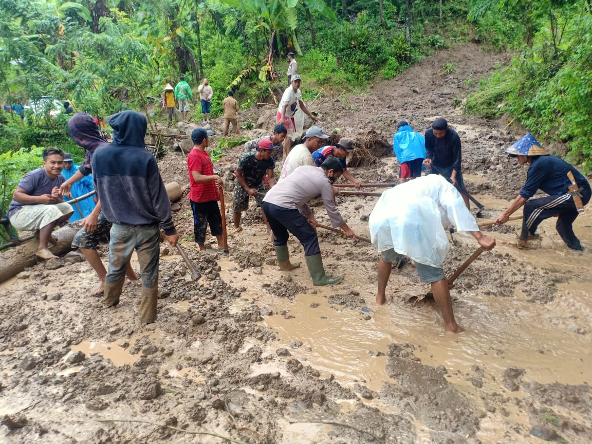 Hal ini terjadi di Dusun Kenanga Desa Pattalikang, Kec. Manuju, Kab. Gowa terlihat dampak dari curah hujan mengakibatkan longsor sehingga menutupi badan jalan.