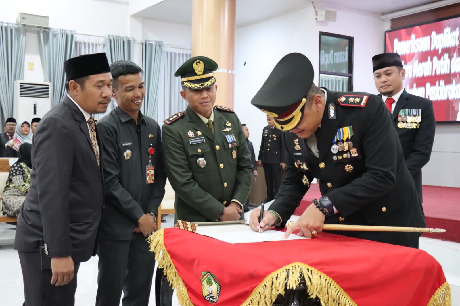 SRIWIJAYATODAY.COM//GOWA-SULSEL Bertempat di Aula Baruga Karaeng Galesong Kantor Bupati Gowa, Kapolres Gowa AKBP R.T.S Simanjuntak S.H., S.I.K., M.M., M.I.K. menghadiri kegiatan upacara pemeriksaan duplikat bendera merah putih dan pengukuhan Pasukan Pengibar Bendera Pusaka (Paskibraka) tingkat Kab.Gowa, Selasa malam (15/08/2023).